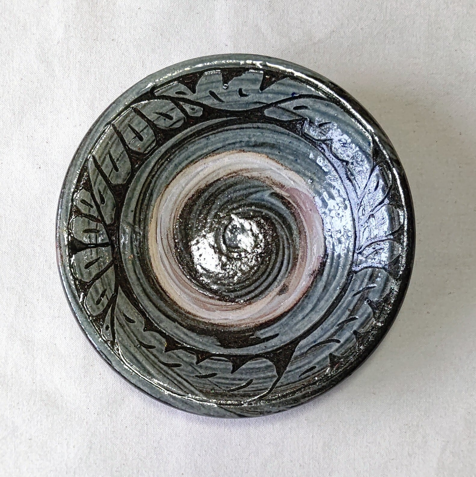 呉須釉掻き落とし文6寸皿 小野更生麗